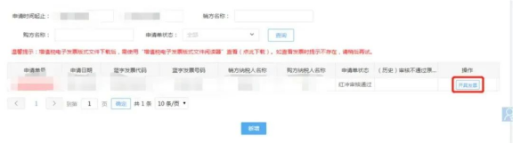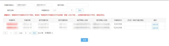 發(fā)票開(kāi)具:可在電子稅務(wù)局“發(fā)票使用-個(gè)人出租房屋代開(kāi)紅字發(fā)票(增值稅電子普通發(fā)票)”查看申請(qǐng)記錄,顯示狀態(tài)“紅沖審核通過(guò)”。點(diǎn)擊“開(kāi)具發(fā)票”即可。