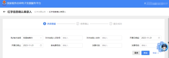 三、紅字發(fā)票開票—紅字發(fā)票確認信息錄入。