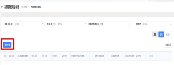 您也可以進(jìn)入【開票業(yè)務(wù)】--【藍(lán)字發(fā)票開具】界面,點(diǎn)擊“去調(diào)整”,系統(tǒng)將自動跳轉(zhuǎn)至發(fā)票額度調(diào)整申請界面。進(jìn)入發(fā)票額度調(diào)整申請界面后,點(diǎn)擊【新增申請】