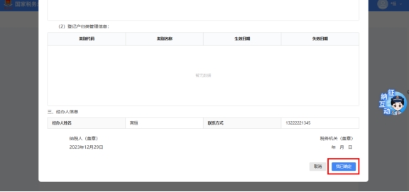 系統(tǒng)彈出預(yù)覽表單界面,展示“跨省(市)遷移稅收征管信息確認表”,點擊【我已確定】。