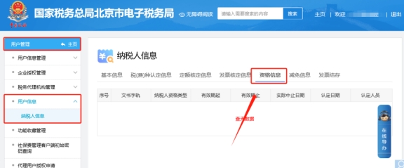 二、用戶管理—用戶信息—納稅人信息—資格信息,查詢一般納稅人資格有效期起。