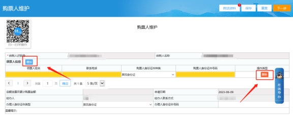 三、領(lǐng)購人維護(hù)頁面,進(jìn)入操作界面后,若要新增人員直接在此處點(diǎn)擊增加;若要刪除,可以在相關(guān)人員信息后方點(diǎn)擊【刪除】。