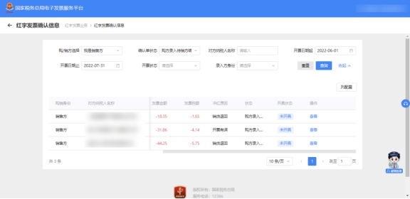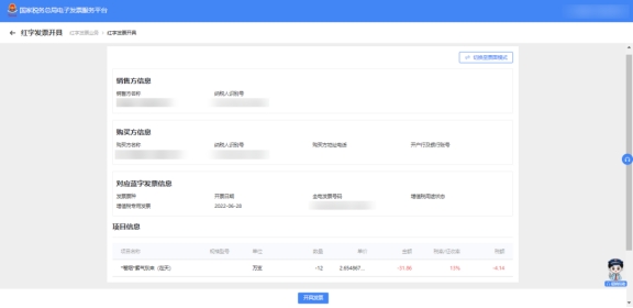 ?第三步,紅字發(fā)票開具。經(jīng)過購(gòu)銷雙方確認(rèn)后的紅字確認(rèn)單或由銷售方單獨(dú)發(fā)起的紅沖,銷售方可在“紅字發(fā)票開具”模塊,開具紅票。