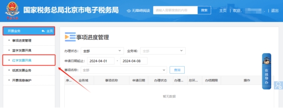 當(dāng)紅字信息確認單狀態(tài)為購銷雙方已確認狀態(tài)或無需確認狀態(tài)時,納稅人可依次進入【我要辦稅】—【開票業(yè)務(wù)】—【紅字發(fā)票開具】頁面,在常用功能模塊中點擊“紅字發(fā)票開具”,錄入查詢條件查詢到此前開具的紅字信息確認單,點擊右側(cè)的“去開票”,進入紅字發(fā)票開具頁面,之后正常開具紅字發(fā)票即可。