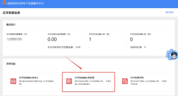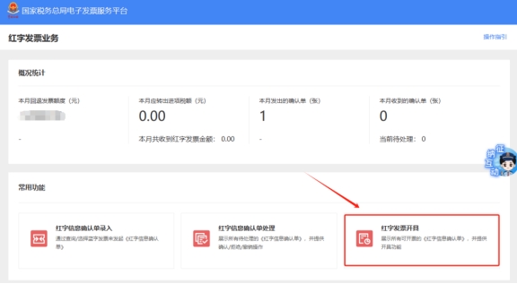 三、在常用功能模塊中點擊“紅字發(fā)票開具”。